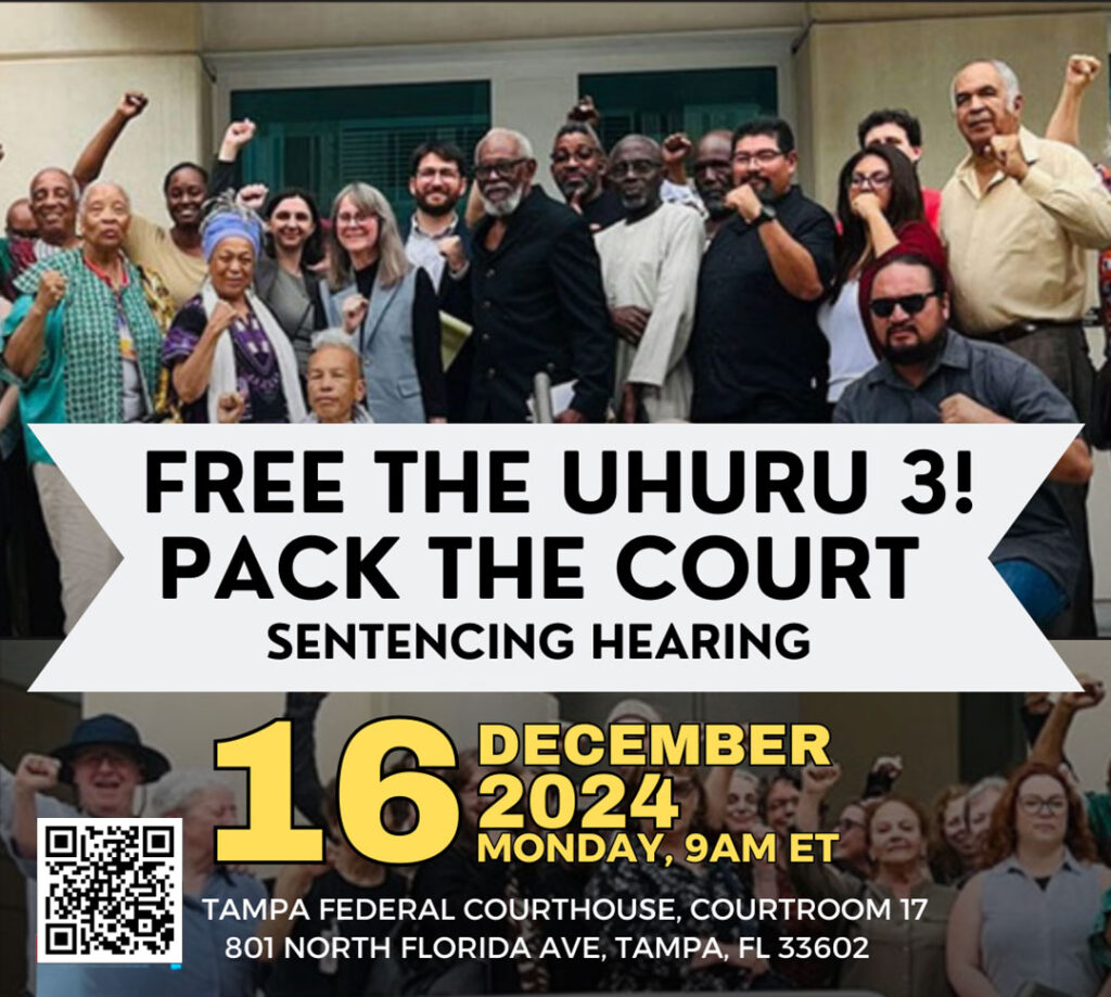 **On December 16, 2024 the U.S. government plans to send Chairman Omali Yeshitela and the Uhuru 3 to federal prison for up to five years for advocating for reparations to African people and talking about African liberation.**