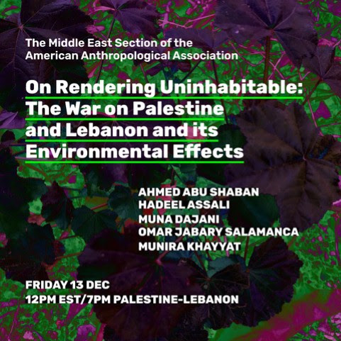 This panel will examine these environmental tactics of war and their long-term effects, along with ground-up tactics of survival and sumud, for it is the latter that holds the key to rebuilding and cultivating futures on the day after.