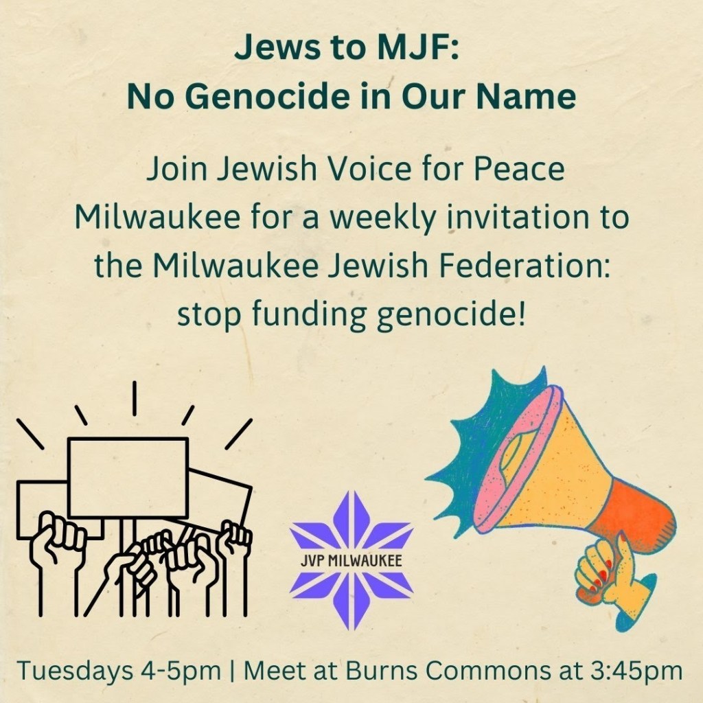 Join Jewish Voice for Peace Milwaukee as they say being against genocide and U.S.-Israeli military occupation of Palestine is not antisemitic.