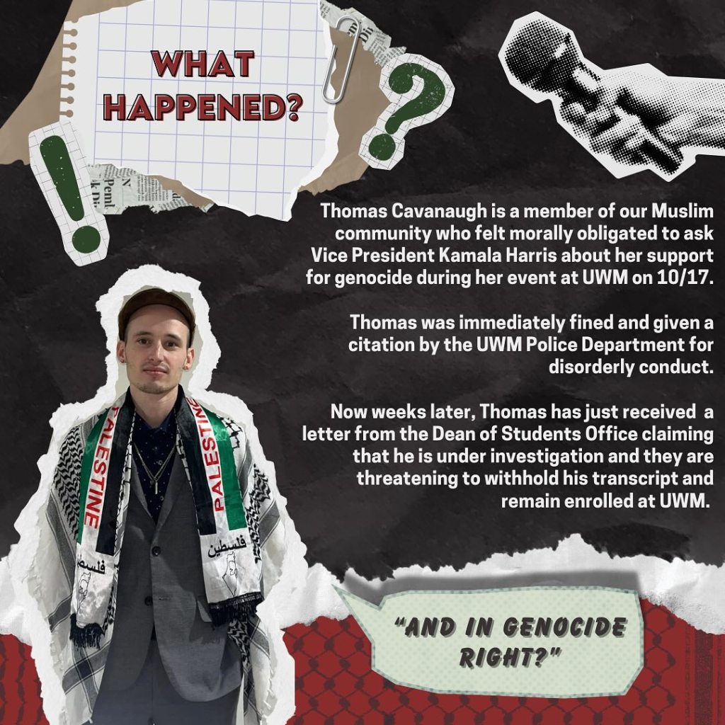 Categories Uncategorized Help Defend UW-Milwaukee Student Attacked by Administration for Supporting Palestine! (Calls & Letters Needed Before December 16, 2024 Hearing) Post author By wibailoutpeople Post date December 13, 2024 Muslim Student Association at UWM Muslim Student Association at UWM Muslim Student Association at UWM Muslim Student Association at UWM Muslim Student Association at UWM Muslim Student Association at UWM Muslim Student Association at UWM Share this: Click to share on X (Opens in new window) X Click to share on Facebook (Opens in new window) Facebook Like Loading... Related ← Reporting from Venezuela: The water sowers movement in the Caribe bioregion; Fishing laws in Chuao, Aragua → U.S. Imperialism Threatens Russia on Southern Front