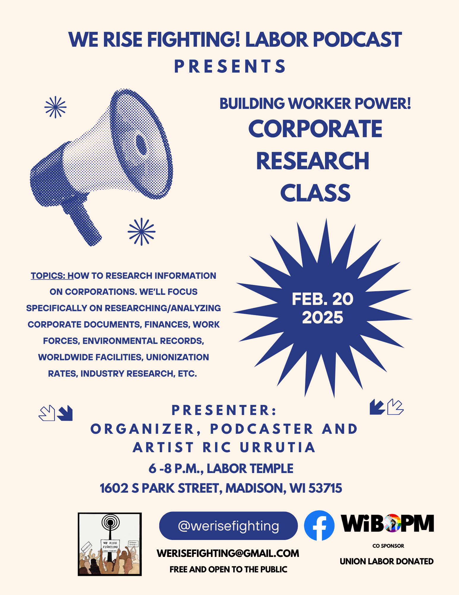 Note: This event has been endorsed by the South Central Federation of Labor (SCFL) Executive Committee. We thank Machinists District 10, the Milwaukee Area Labor Council and other union and community organizations for help with promotion. Unions are welcome to share this information and flyers via your social media and other networks. Any questions, email: werisefighting@gmail.com.