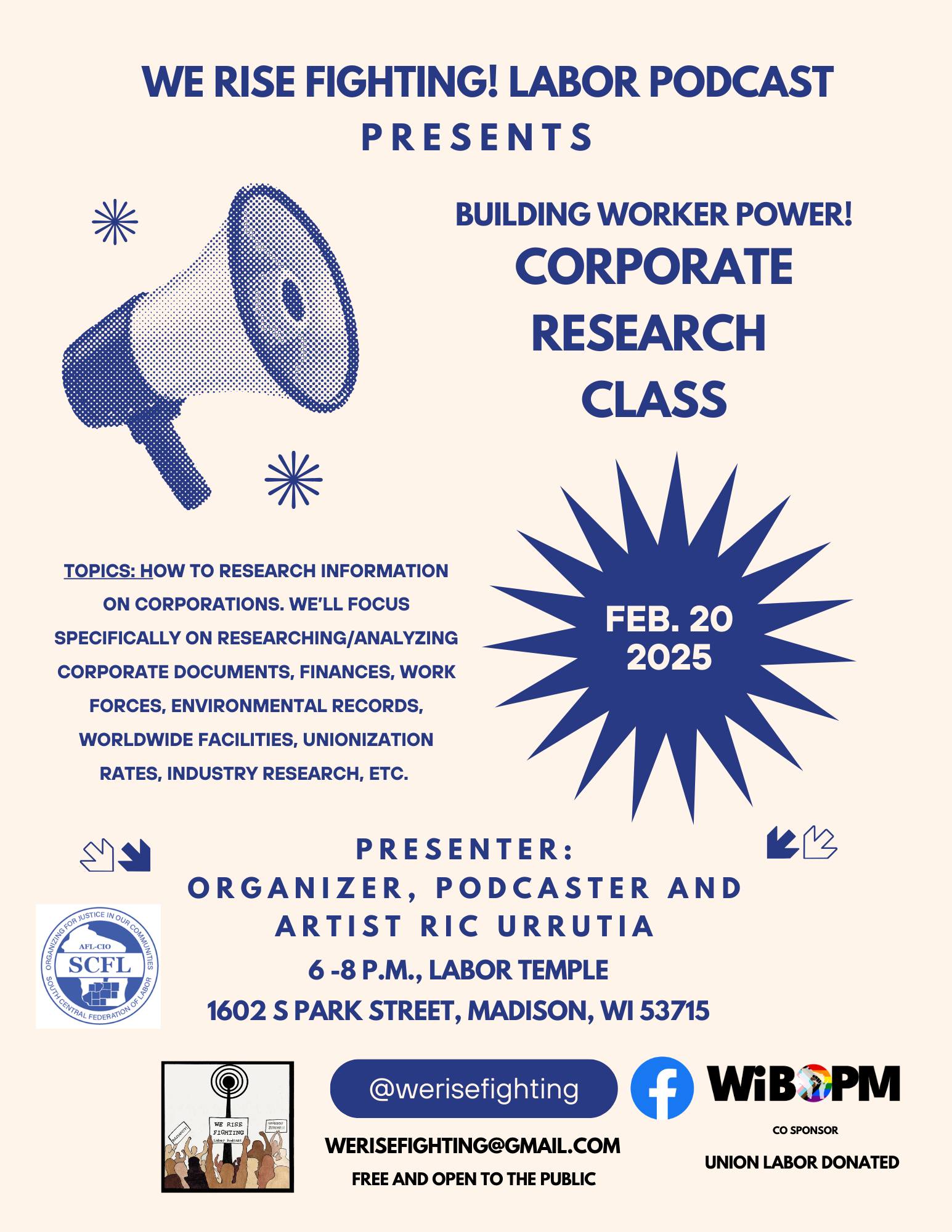Presenter: Ric Urrutia, organizer, podcaster, artist, Co-Host of We Rise Fighting! Labor Podcast