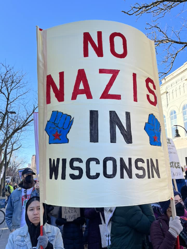 One year ago – Feb. 10, 2024 – @wibopm led a march and rallies in Madison, WI to oppose Nazis or other any other fascists marching openly in Wisconsin. This was in response to Nazis menacing a Pride parade in Watertown in July 2023 and marching in Madison in December 2023 and projecting Nazi symbols onto dorm buildings at UW Whitewater. We stand in solidarity with the People’s Defense Units in Lincoln Heights, OH! There’s no free speech for racist genocidal fascists! We the workers and oppressed peoples have the right to self defense by any means necessary!