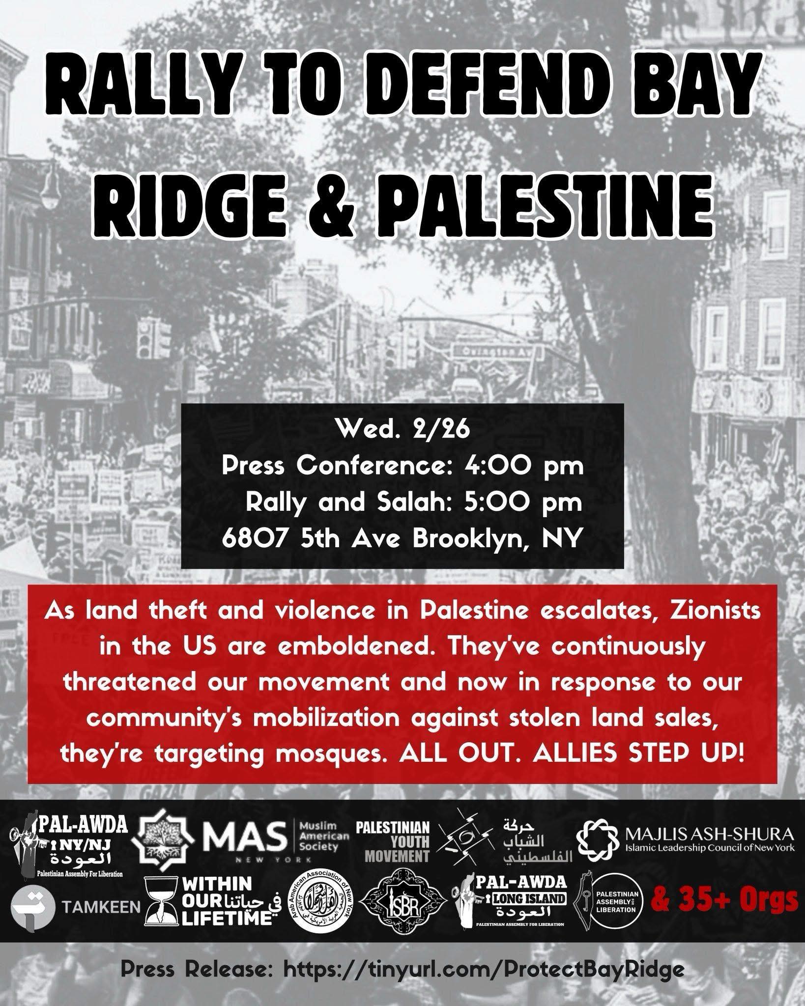 Categories Uncategorized Rally to Defend Bay Ridge & Palestine Feb. 26, 2025 Post author By WiBOPM Post date February 24, 2025 Share this: Share on X (Opens in new window) X Share on Facebook (Opens in new window) Facebook Like Loading... Related ← Madison, March 4, 2025: Worker Justice Wisconsin General Assembly → Madison, June 13-15, 2025: The Big Day Pride Market 2025