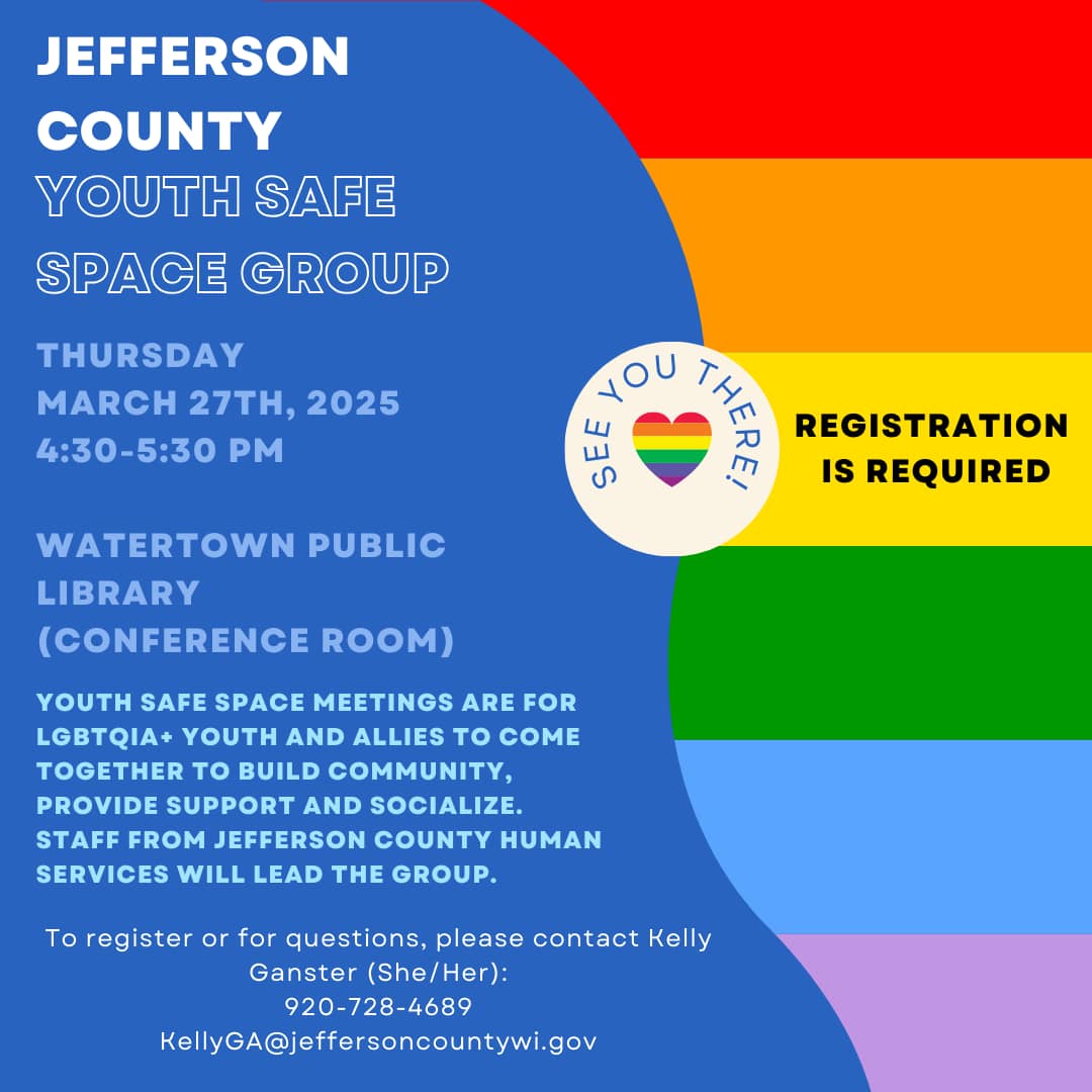 Categories Uncategorized Watertown March 27 and April 24, 2025: Youth Safe Space Group Post author By WiBOPM Post date March 10, 2025 Share this: Click to share on X (Opens in new window) X Click to share on Facebook (Opens in new window) Facebook Like Loading... Related ← UW Madison, March 11, 2025: Walk Out for Mahmoud! – NO to University Repression & State Violence! → Postal Workers Union National Day of Action March 20, 2025! (City Listings)