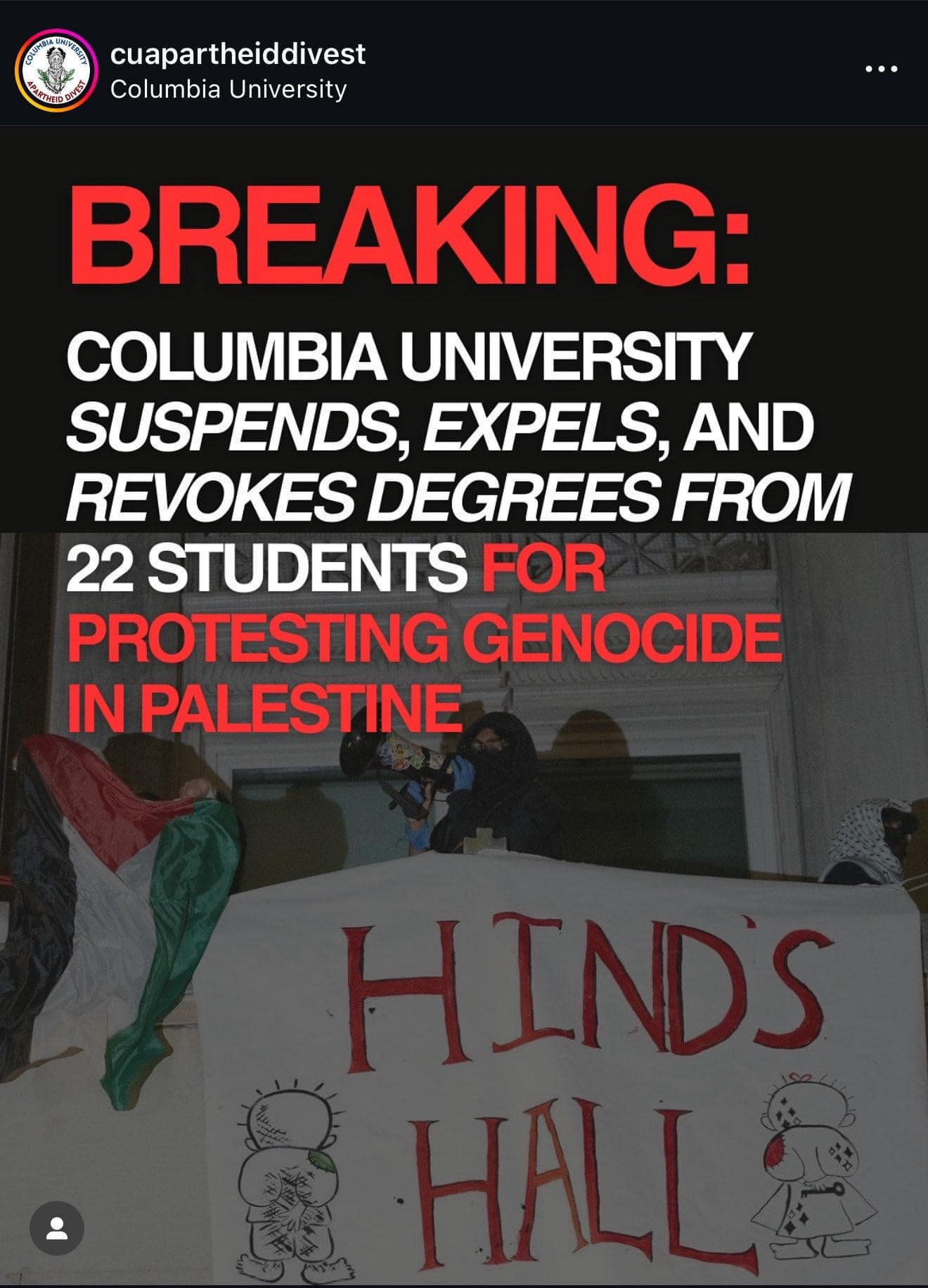 Trade unionists everywhere, defenders of the Constitution, of freedom of speech, of academic freedom, and of the right of free association, should be appalled and disgusted by the behavior of Columbia University, and should take it for the clear signal it is. If they can come for graduate workers, if they can arrest, deport, expel, or imprison union leaders and activists for their protected political speech, then they can come for you. For your contract. For your paycheck. For your family. And for your rights.