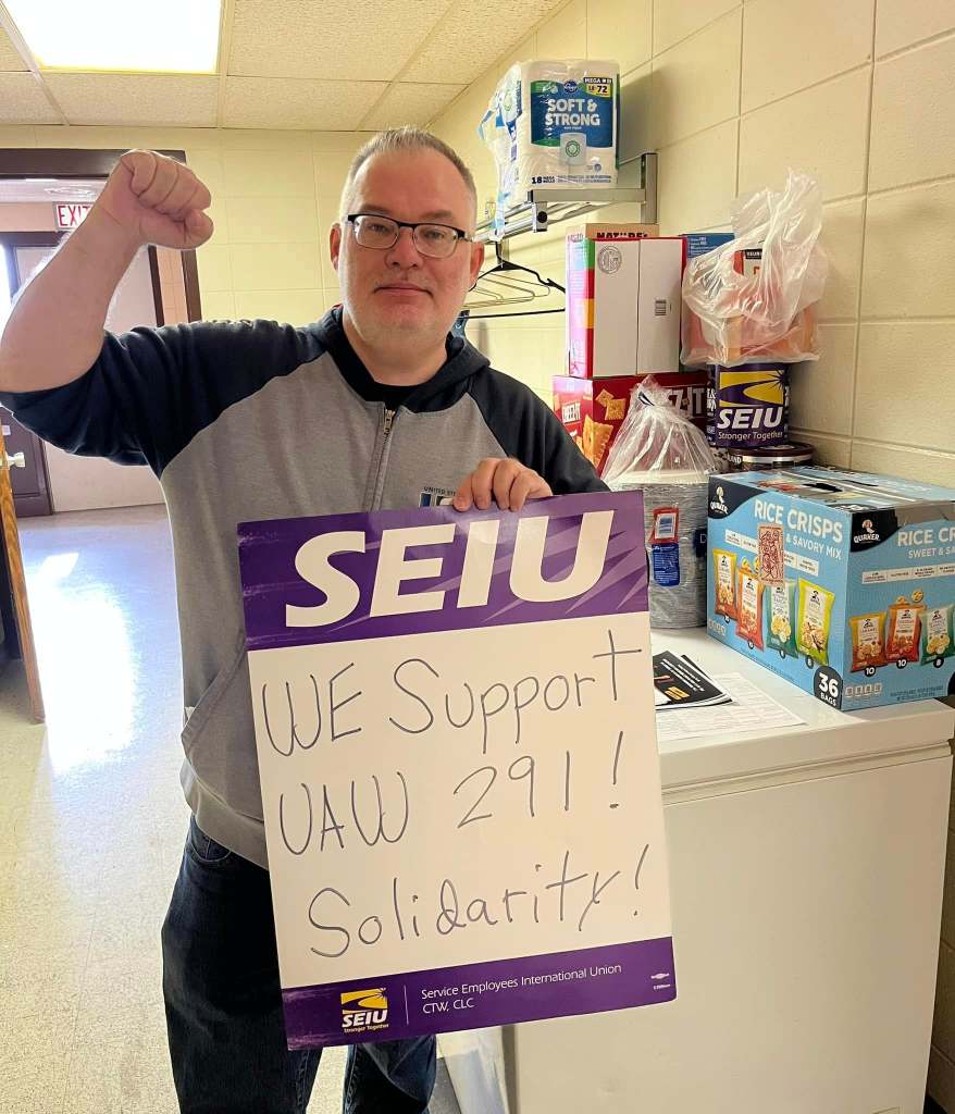 A People’s Solidarity Brigade dropped off in kind contributions for UAW 291 strikers March 28, 2025 at the Oshkosh union hall. Collections from many unions and the South Central Federation of Labor, Worker Justice Wisconsin, Voces de la Frontera, We Rise Fighting! Labor Podcast and Wisconsin Bail Out the People Movement, were taken up at the Madison Labor Temple and transported to Oshkosh March 28, 2025 by SEIU Wisconsin and the Steelworkers.