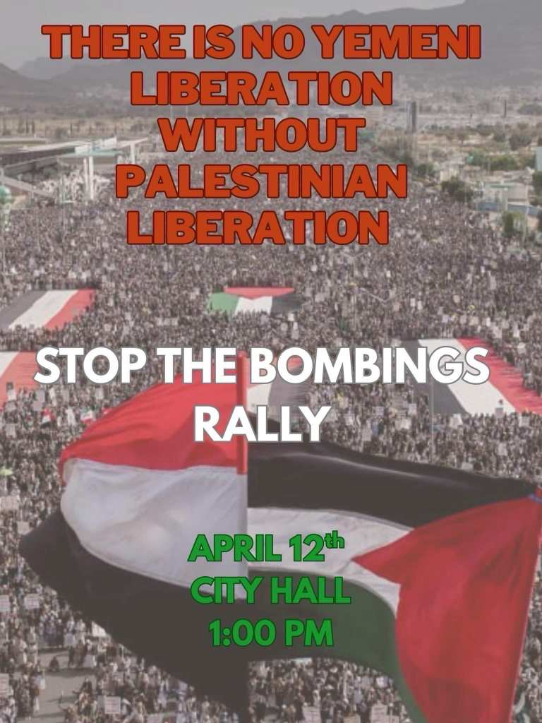 Categories Uncategorized Milwaukee, April 12, 2025: Stop the U.S. Bombing of Yemen! Post author By WiBOPM Post date April 8, 2025 Share this: Click to share on X (Opens in new window) X Click to share on Facebook (Opens in new window) Facebook Like Loading... Related ← Madison, April 21, 2025: May Day Fundraiser → Madison, May 10, 2025: 44th Annual Conference – Wisconsin Labor History Society