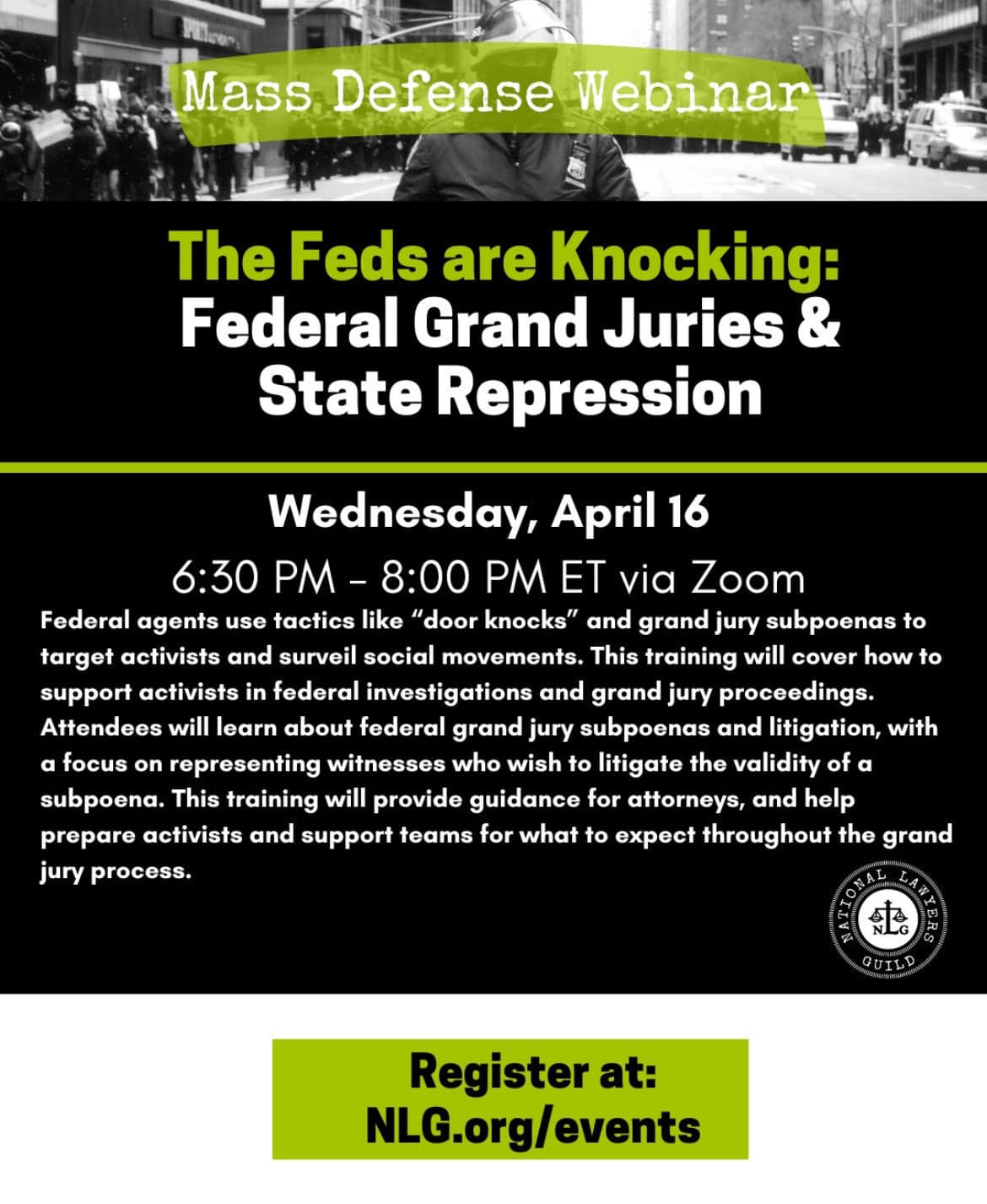 Categories Uncategorized Online: National Lawyers Guild Mass Defense Webinar April 16, 2025 Post author By WiBOPM Post date April 9, 2025 Share this: Share on X (Opens in new window) X Share on Facebook (Opens in new window) Facebook Like Loading... Related ← Madison: Meriter nurses hold ‘Strike Ready Rally’ to support workplace safety and quality patient care → Madison, April 16, 2025: “Getting Strike Ready”