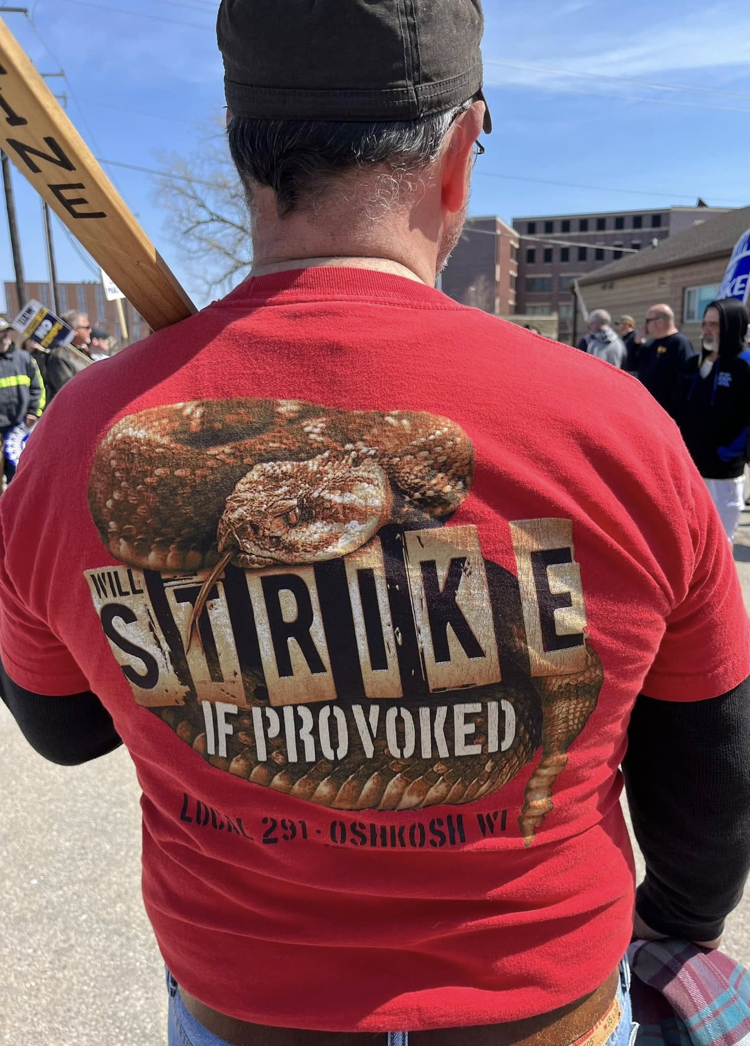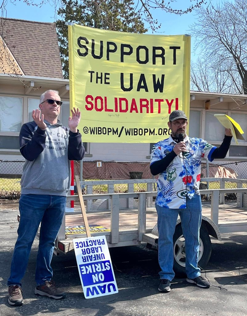 Categories Uncategorized Union and Community Members from Across Wisconsin Join UAW 291 Strike Solidarity Rally! Post author By WiBOPM Post date April 12, 2025 UAW 291 leaders holding the line at Cummins Corp. in Oshkosh. All Photos on April 12, 2025 by: Wisconsin Bail Out The People Movement Share this: Click to share on X (Opens in new window) X Click to share on Facebook (Opens in new window) Facebook Like Loading... Related ← Defeating the IHRA witch hunt: An interview with Palestinian activist and scholar Shahd Abusalama → Supporter Rally for UAW Local 291 in Oshkosh