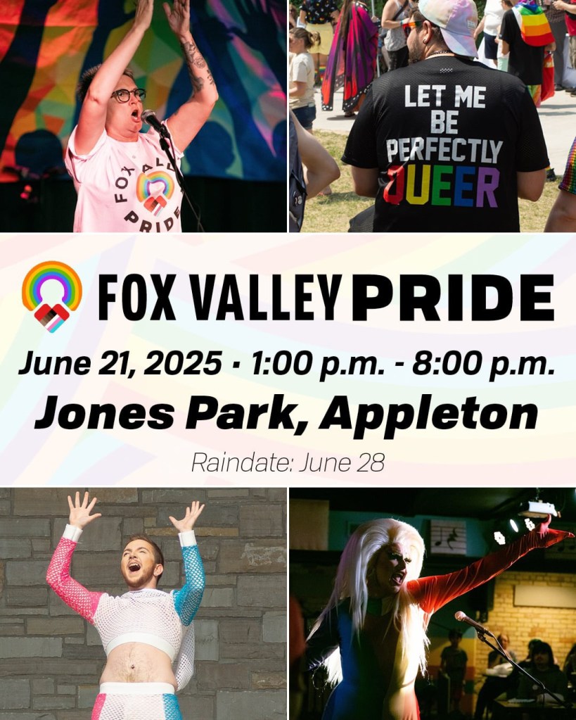 Categories Uncategorized Appleton, June 21, 2025: Fox Valley Pride Festival Post author By WiBOPM Post date April 25, 2025 Facebook Event: https://www.facebook.com/share/1ABRbQSsg2/ Fox Valley Pride Share this: Share on X (Opens in new window) X Share on Facebook (Opens in new window) Facebook Like Loading... Related ← Milwaukee/Wisconsin: People’s Forces Respond Immediately to ICE/FBI Attacks on Judge Dugan and the Undocumented → Madison, April 26, 2025: Annual Pow Wow