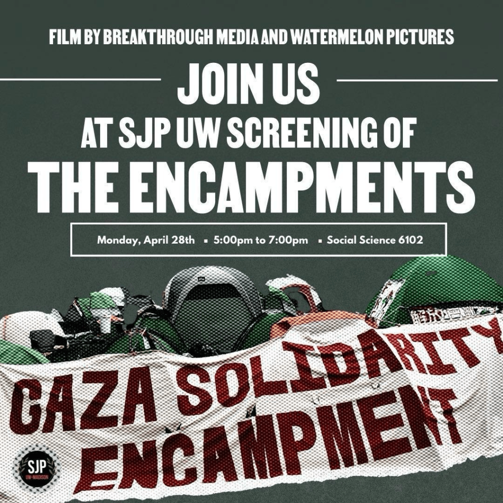 Categories Uncategorized UW Madison, April 28, 2025: ‘The Encampments’ Film Screening by Students for Justice in Palestine Post author By WiBOPM Post date April 27, 2025 The Encampments 6102 Social Sciences Building, UW Madison 5-7 pm Share this: Share on X (Opens in new window) X Share on Facebook (Opens in new window) Facebook Like Loading... Related ← Despite global opposition, Trump just fast-tracked deep-sea mining → “Day Without Immigrants and Workers” Milwaukee/Madison May 1 and Madison, May 2, 2025