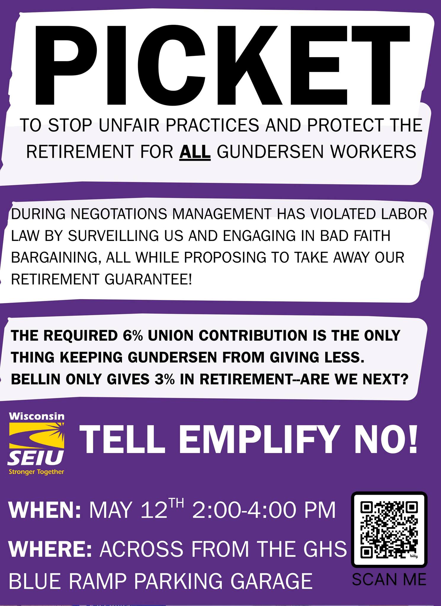 Tell Gundersen-Emplify: STOP the unfair labor practices! HANDS OFF retirement benefits!