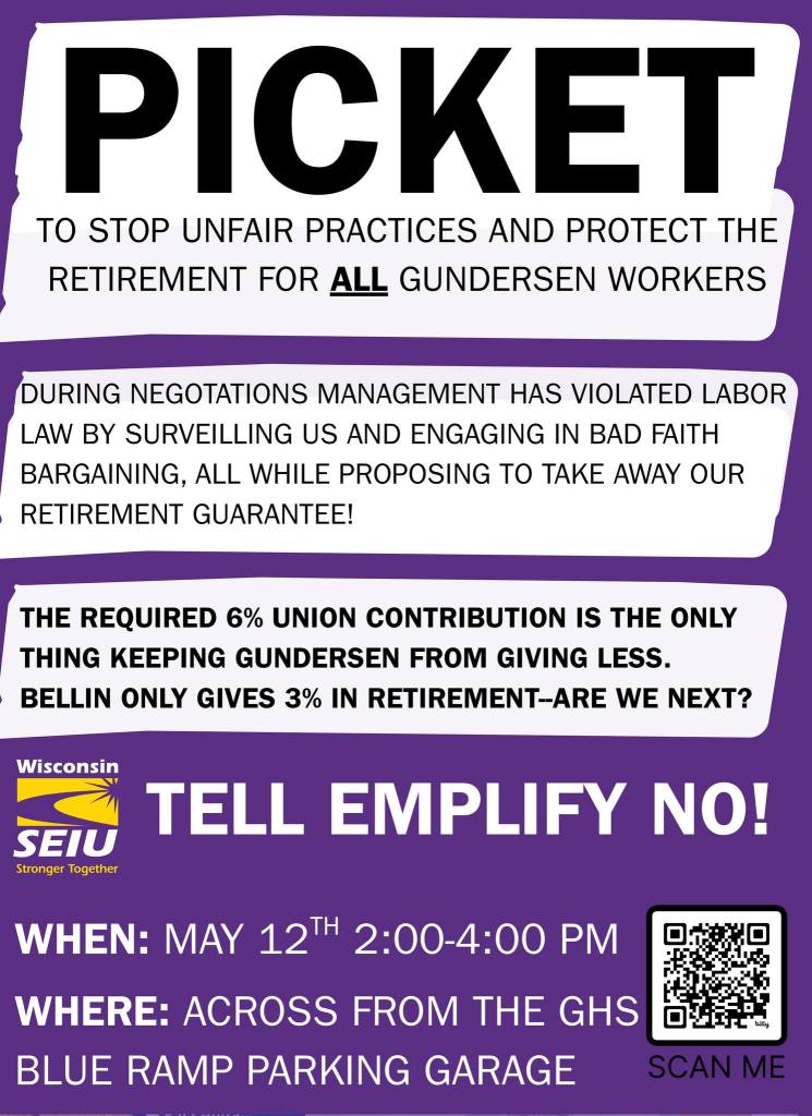 LA CROSSE: Come support Gundersen workers by attending their Informational Picket!
