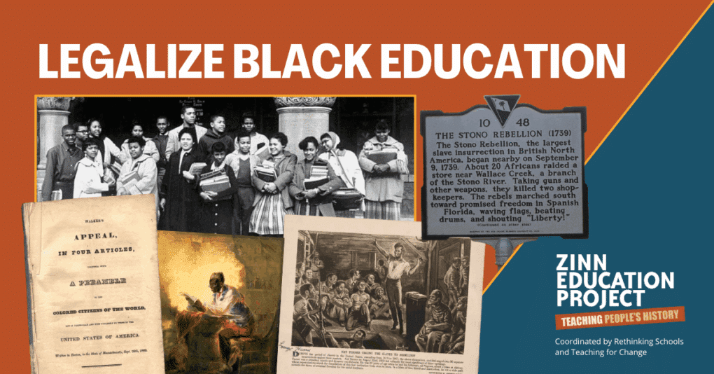 | We just posted Legalize Black Education: The Long Fight for the Right to Learn by Jesse Hagopian. This lesson reveals a pattern: When Black people make significant educational gains — or score victories in their broader struggles for freedom — there is a corresponding white supremacist backlash that often includes legal restrictions and violence. Students explore laws passed to curb Black education in the wake of major victories for the Black Freedom Struggle, highlighting the historical context and motivations behind these legislative efforts. They also discuss quotes about Black education. Check out the lesson and let us know if you use it in your classroom. We’ll send you books in appreciation for your teaching story. Handouts from the lesson are also available to use as mini-lessons for the Teach Truth Day of Action. |
