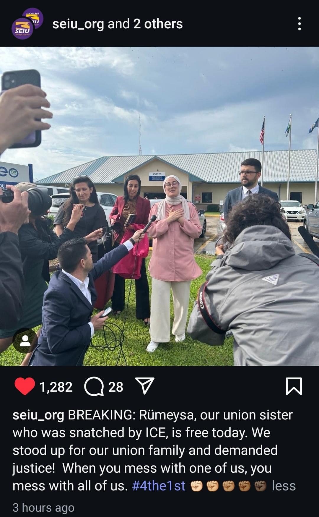 Categories Uncategorized People’s Resistance Wins Rumeysa’s Relase; Fight Continues Post author By WiBOPM Post date May 10, 2025 Share this: Share on X (Opens in new window) X Share on Facebook (Opens in new window) Facebook Like Loading... Related ← Hold Waterford High School Accountable for Racism at Track Meet! → ONLINE, May 21, 2025: WI Muslim Civic Alliance ‘Know Your Rights’ Training