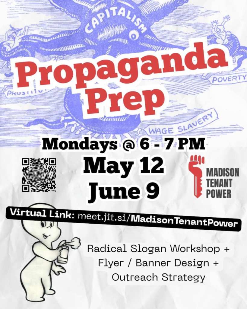 Categories Uncategorized Madison, Propaganda Prep by Madison Tenant Power May 12 and June 9, 2025 Post author By WiBOPM Post date May 11, 2025 Share this: Share on X (Opens in new window) X Share on Facebook (Opens in new window) Facebook Like Loading... Related ← Watertown, WI June 23, 2025: Youth Safe Space Group → Remembering Leslie Feinberg’s revolutionary solidarity with Palestine