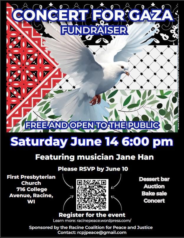 Categories Uncategorized Racine, June 14, 2025: Concert for Gaza! – Fundraiser Post author By WiBOPM Post date May 19, 2025 Share this: Click to share on X (Opens in new window) X Click to share on Facebook (Opens in new window) Facebook Like Loading... Related ← Milwaukee, June 1, 2025: Youth Harm Reduction Fair → Madison, May 31, 2025: Building Unity Spring Gathering