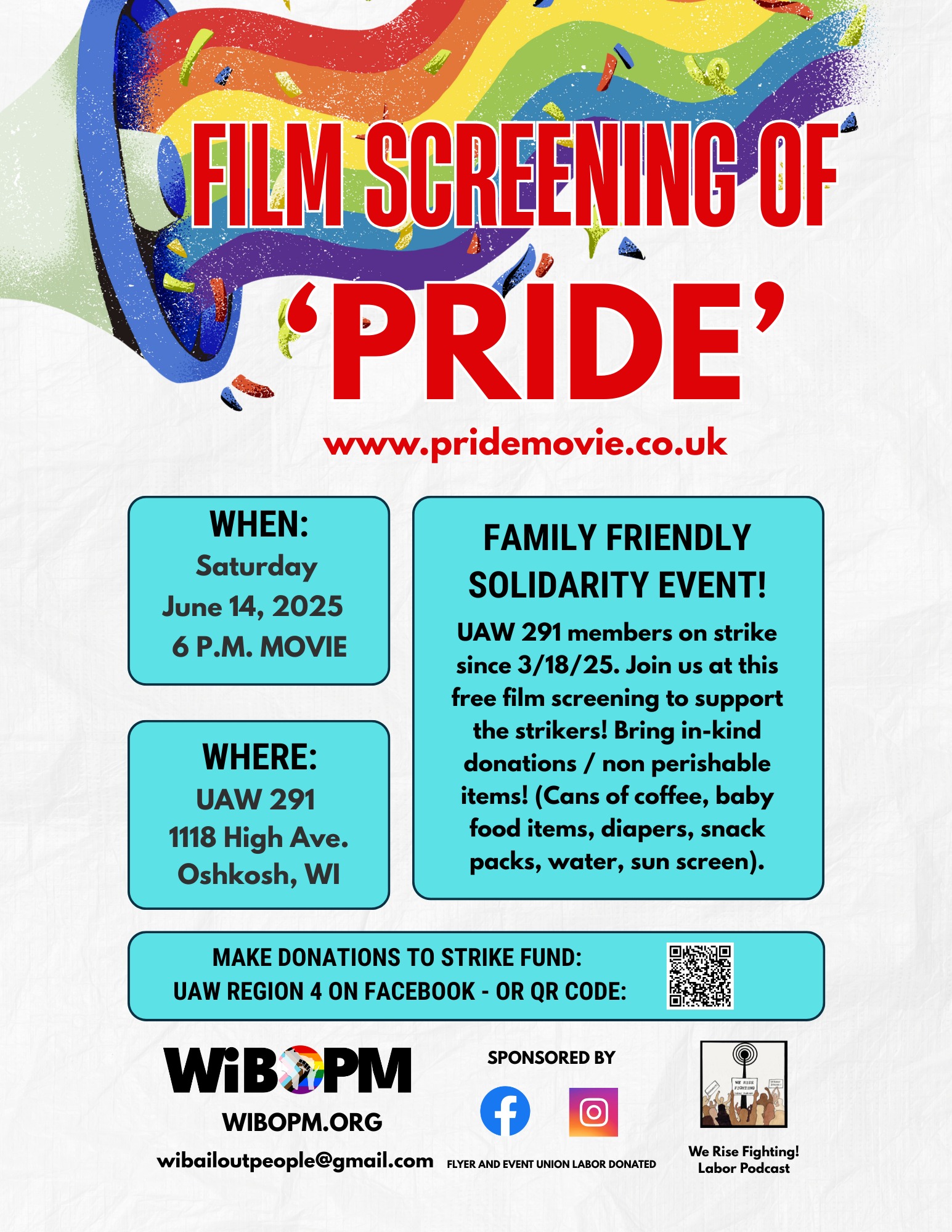 UAW 291 members have been on strike against the Cummins Corporation since 3/18/25. Join us at this free film screening to support the strikers! Bring in-kind donations / non perishable items! (Cans of coffee, baby food items, diapers, snack packs, water, sun screen). Event begins at 6 p.m. but stop by about 5 p.m. for a grill out.