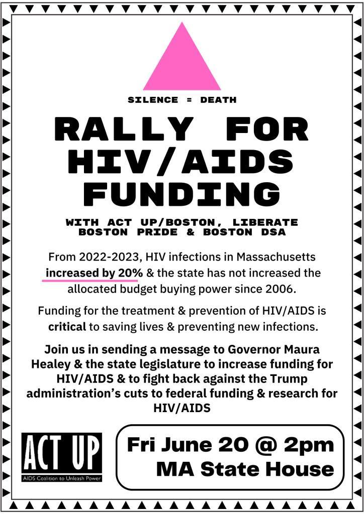 Categories Uncategorized Boston, June 20, 2025: Rally for HIV/AIDS Funding with Act Up & Boston Liberate Pride Post author By WiBOPM Post date June 12, 2025 Share this: Share on X (Opens in new window) X Share on Facebook (Opens in new window) Facebook Like Loading... Related ← Israel vs. Iran: What a Full-Scale War Would Look Like – Analysis → Wisconsin, June 14, 2025: ‘No Kings’ Protests (City Listings)
