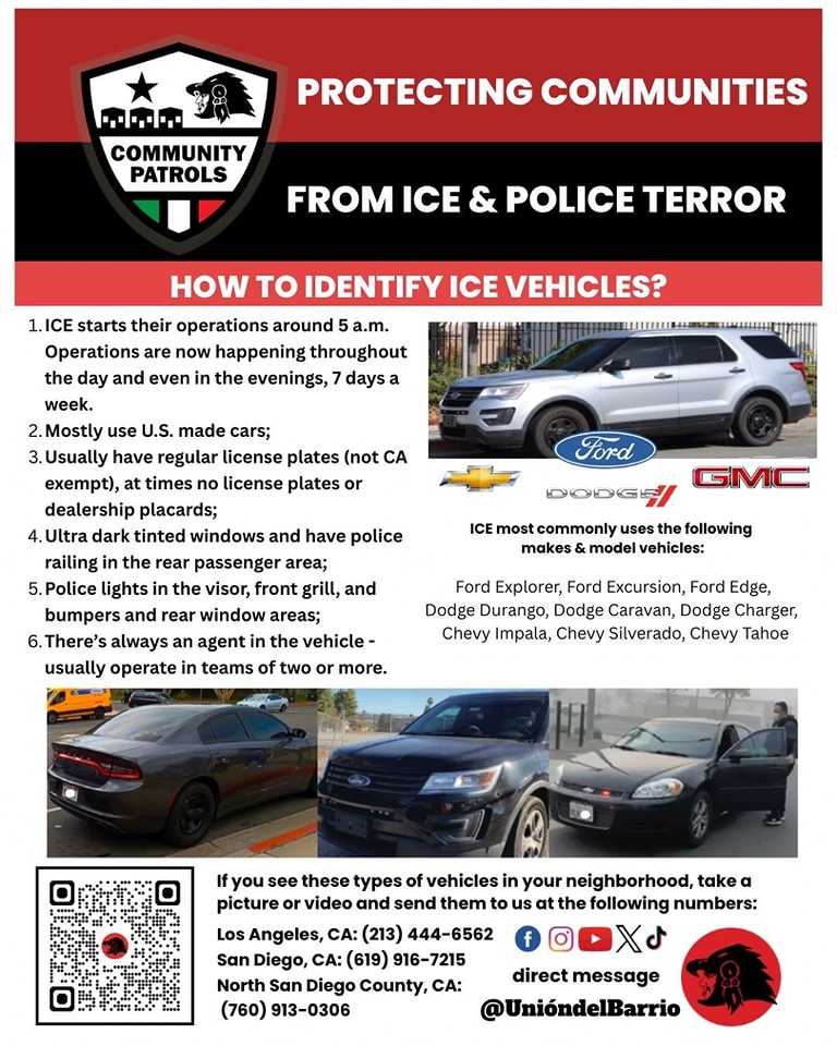 Categories Uncategorized Unión del Barrio – How to Identify ICE Vehicles & Know Your Rights Info! Post author By WiBOPM Post date June 18, 2025 Unión del Barrio Share this: Click to share on X (Opens in new window) X Click to share on Facebook (Opens in new window) Facebook Like Loading... Related ← ‘Stone Butch Blues’ by Leslie Feinberg – Free Download → Without US Aid Missile Shield Crumble–Palestine Chronicle