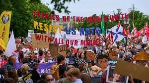 Antiwar forces flooded into The Hague in the Netherlands prior to the NATO 2025 summit to protest the meeting of this aggressive, imperialist military alliance. A People’s Summit was held by the Resist NATO Coalition. UNAC members are part of the Resist NATO steering committee. Other anti-NATO meetings were held by the Global Women United for Peace Against NATO (GWUAN), also represented on the Resist NATO steering committee, the No to war – No to NATO Network and other groups. All groups joined together for a mass protest in the Hague on Sunday, June 22 that drew an estimated ten thousand people. [read more]