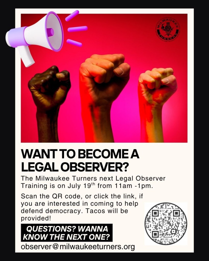 The Milwaukee Turners are committed to defending our constitutional right to free speech and assembly by volunteering as Legal Observers for protests and events in the Milwaukee area.