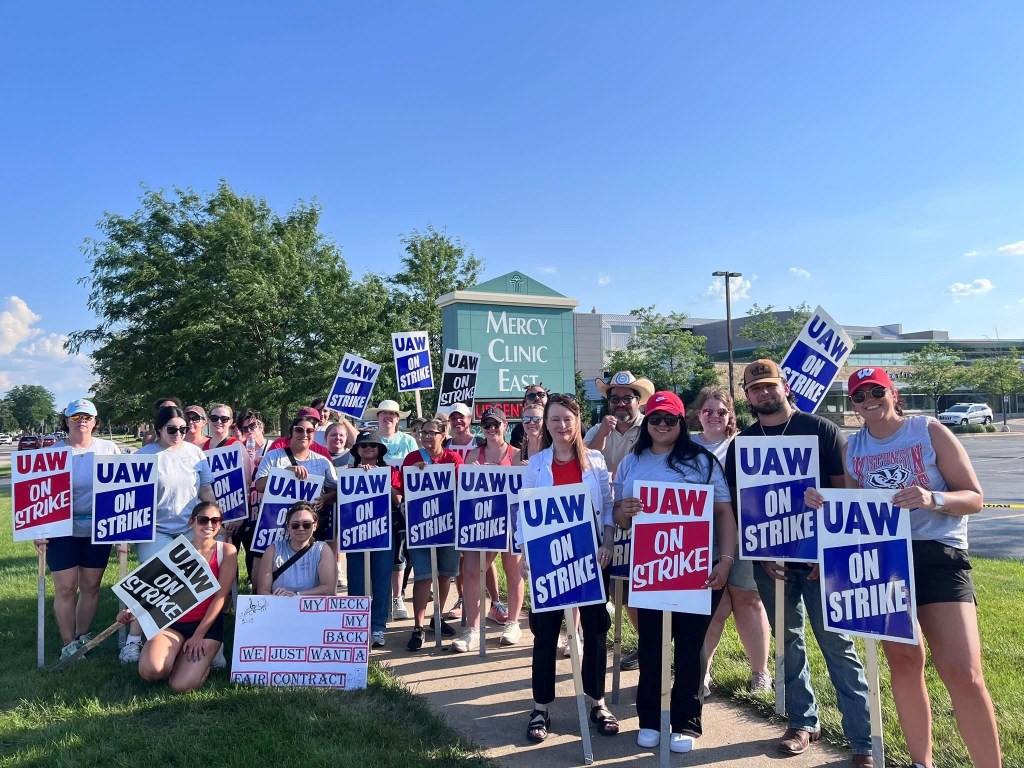 Categories Uncategorized UAW Local 95 in Janesville – Solidarity Rally July 18, 2025 Post author By WiBOPM Post date July 15, 2025 UAW Local 95 MercyHealth Clinic EAST Solidarity Rally Friday July 18, 2025 1 P.M. Address: 3524 E Milwaukee St E (Corner of Milwaukee & Wright Streets) Janesville, WI 53546 Wright St, Main Picket Tent Parking on the street is available on Wright Street Share this: Click to share on X (Opens in new window) X Click to share on Facebook (Opens in new window) Facebook Like Loading... Related ← July 17, 2025 National Day of Action – Good Trouble Lives On – Nationwide Actions → UAW Local 95 Healthcare Workers Solidarity Rally July 18, 2025