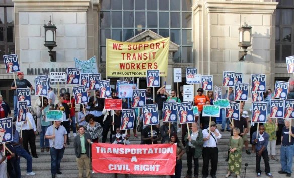 [Photo from 2015 Milwaukee ATU Local 998 strike with @wibopm banner]
