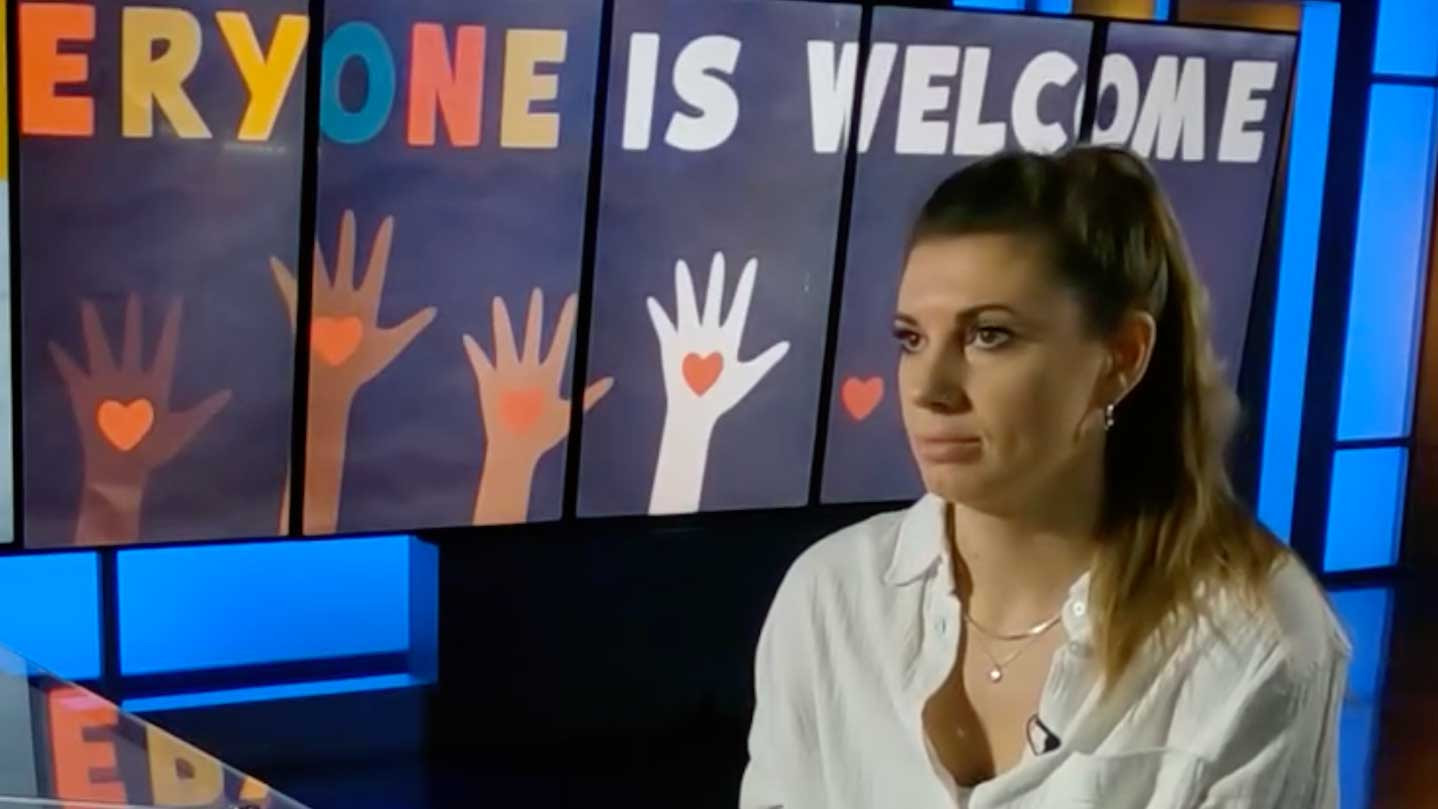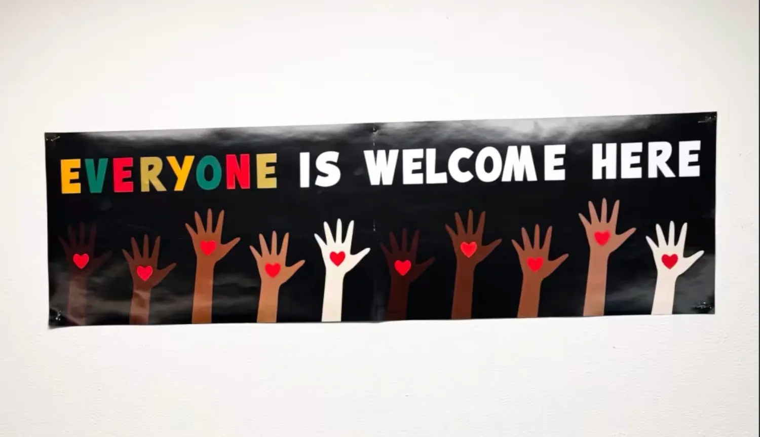 | The poster said, “Everyone is Welcome Here.” School officials told Sarah Inama to take it down. |