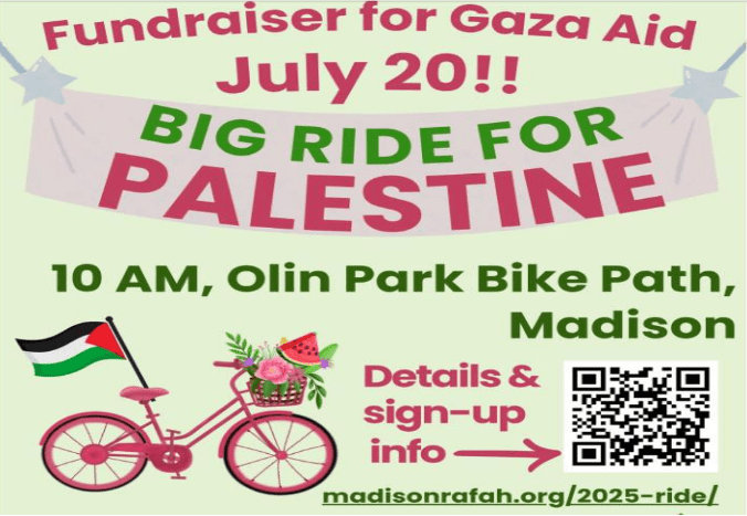 Thanks to all our riders, supporters and volunteers, and especially to our co-sponsors, Jewish Voice for Peace-Madison and WORT Radio.
