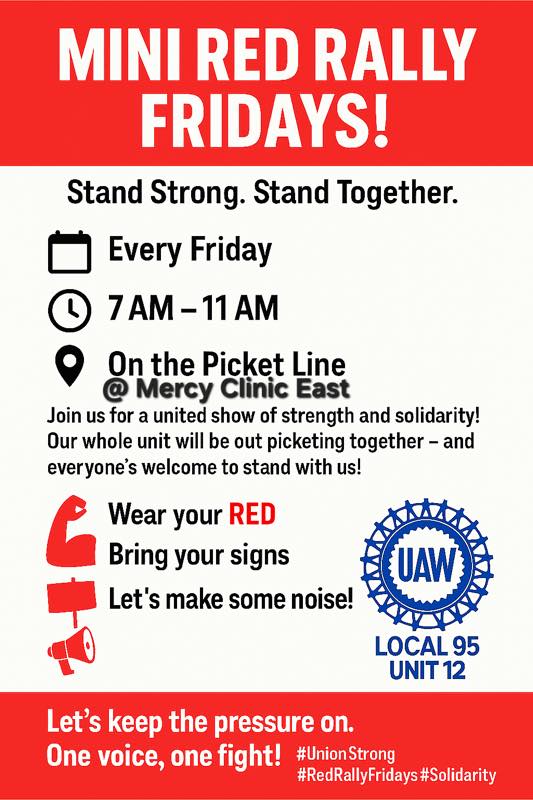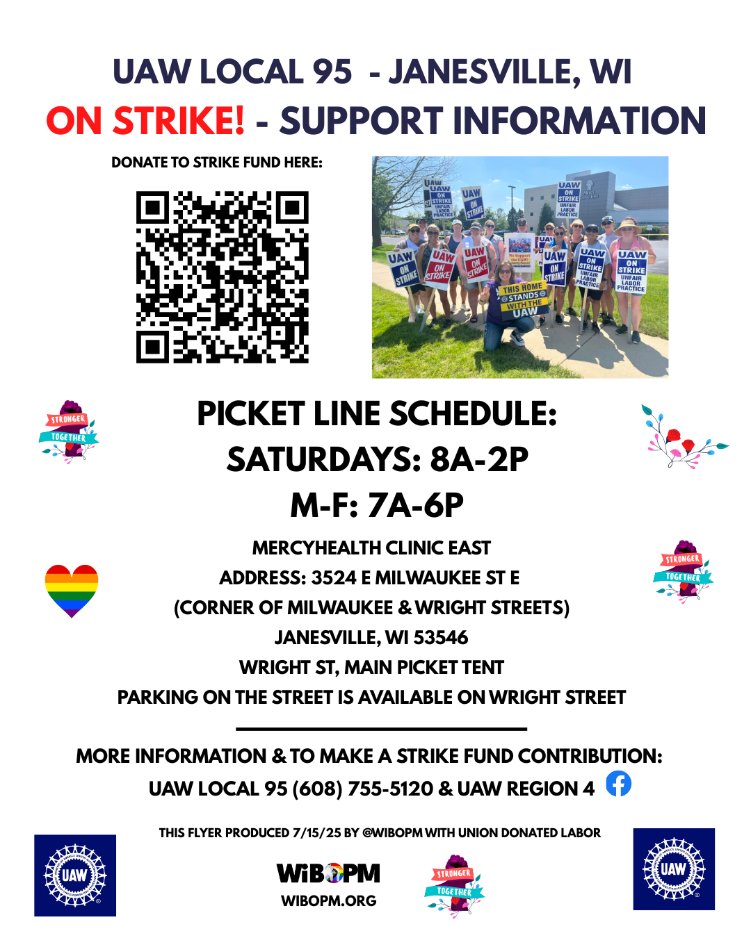3524 E Milwaukee St., Janesville (Mercy Clinic) – & make a strike fund contribution and share info! Link to strike fund: https://donorbox.org/support-strikers-at-local-_____-3-2-2-3-2-5-3?preview=1752589049
