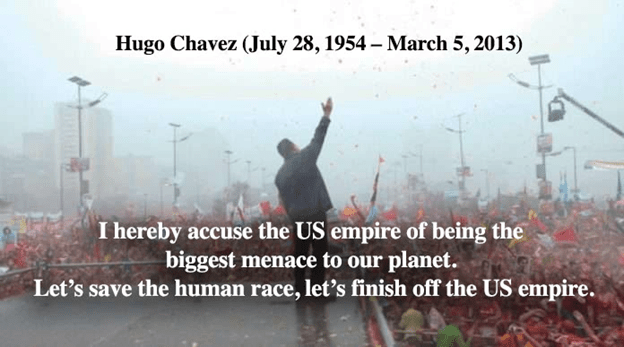Simon Bolivar and Hugo Chavez; Nicaragua’s Sandinista Revolution; Thomas Jefferson and Hitler; Torture of Venezuelans in El Salvador prison; Fidel and Che