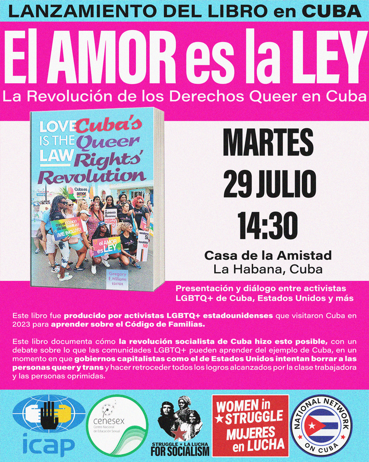 Struggle ★ La Lucha honored to announce a launch IN CUBA of our most recent book LOVE IS THE LAW: Cuba’s Queer Rights Revolution. Join us for an historic dialogue between LGTBQ+ activists from Cuba, the U.S., and more. Tuesday, July 292:30 pm ICAP Friendship HouseHavana, Cuba This meeting will be recorded and shared. ###### […]