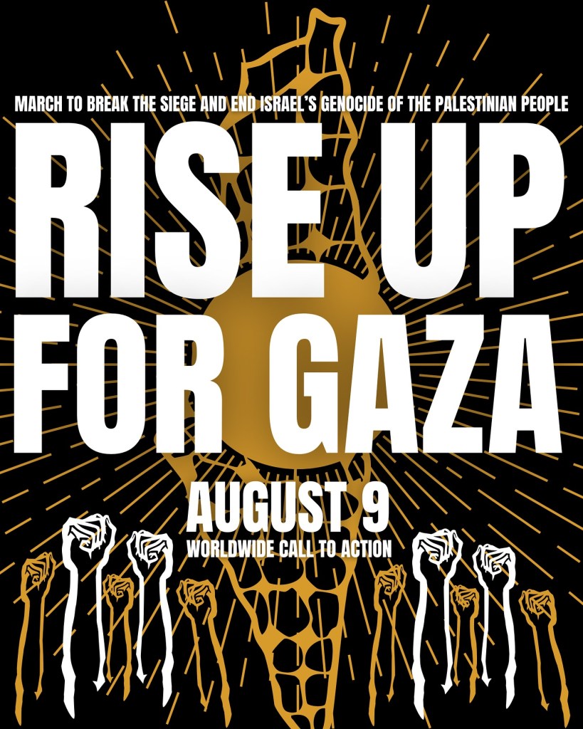 GLOBAL DAY OF ACTION: Activists across the world are calling for a Global Day of Action on Saturday, August 9th. Join us in taking to the streets and demanding an end to the brutal US-backed Israeli siege and genocide in Gaza.