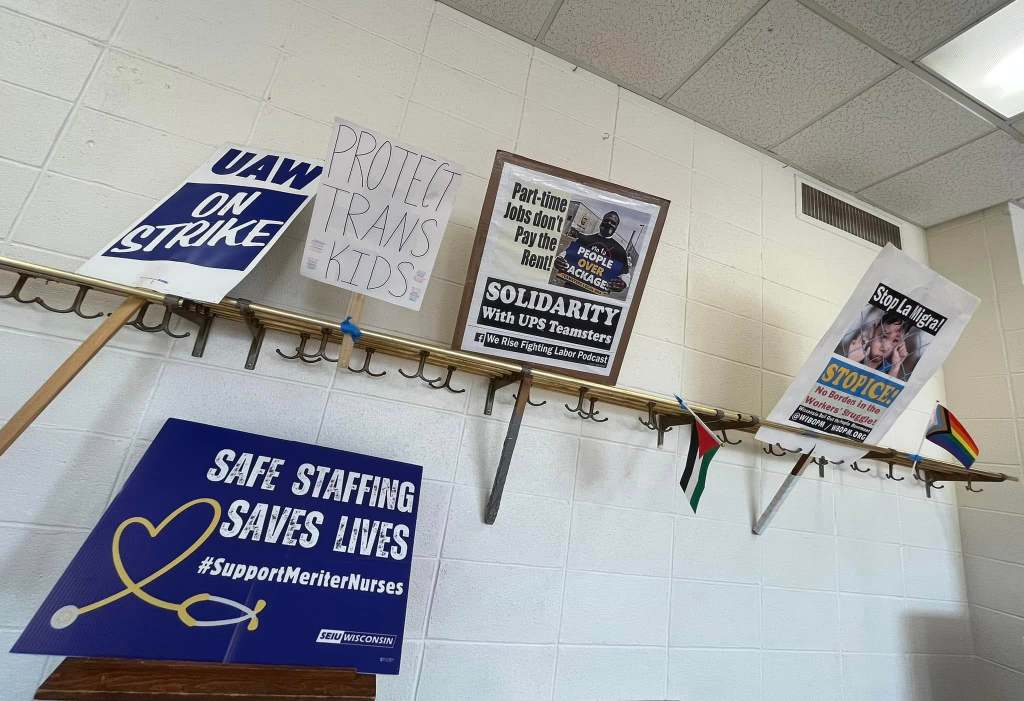 MADISON, WI AUGUST 15, 2025 — What a night! Packed the house at the Madison Labor Temple for a UAW 95 strike fundraiser. Diverse Union and community members and leaders from all over Wisconsin and Chicago Federation of Labor members showed out strong! Great food, music, ’Pride’ movie, and robust strike fund and in kind donations. An Injury To One Is An Injury To All! – Solidarity Forever!