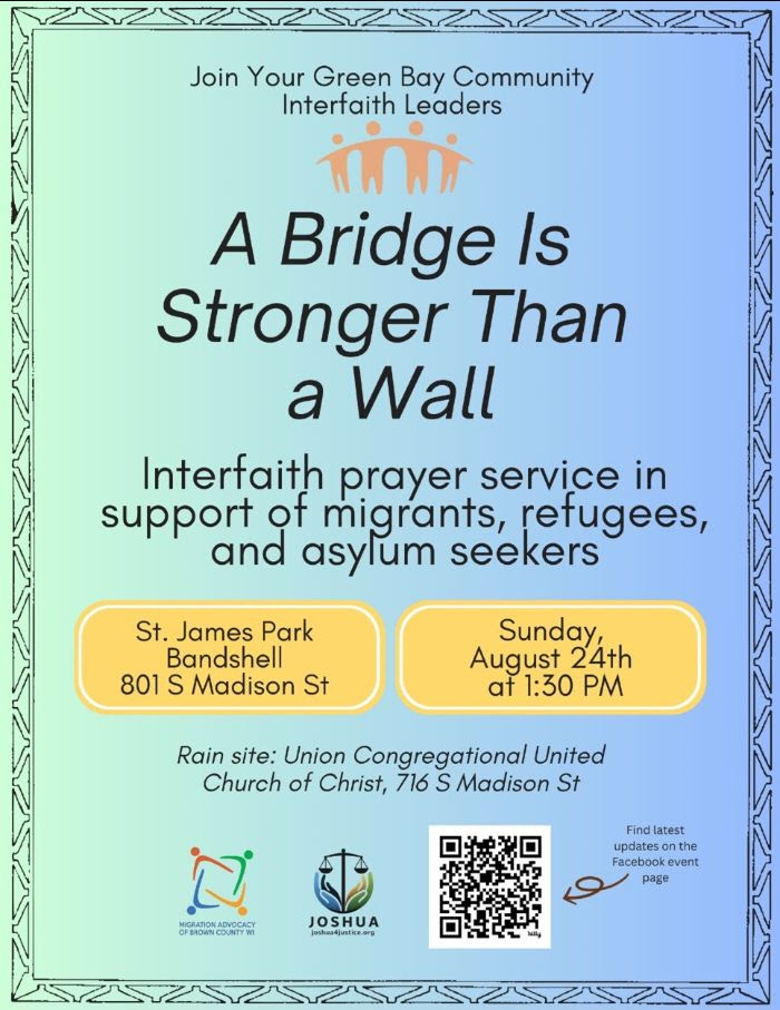 Categories Uncategorized Green Bay, August 24, 2025: Interfaith Event for Migrants, Refugees and Asylum Seekers Post author By WiBOPM Post date August 18, 2025 In Green BaySunday, August 24 @ 1:30 p.m. Share this: Click to share on X (Opens in new window) X Click to share on Facebook (Opens in new window) Facebook Like Loading... Related ← Madison, August 23, 2025: Healing Over Harm! – People’s Needs Not Prisons! → Wisconsin: Stand for Peace! Free Palestine! Events August 19-24, 2025 (City Listings)