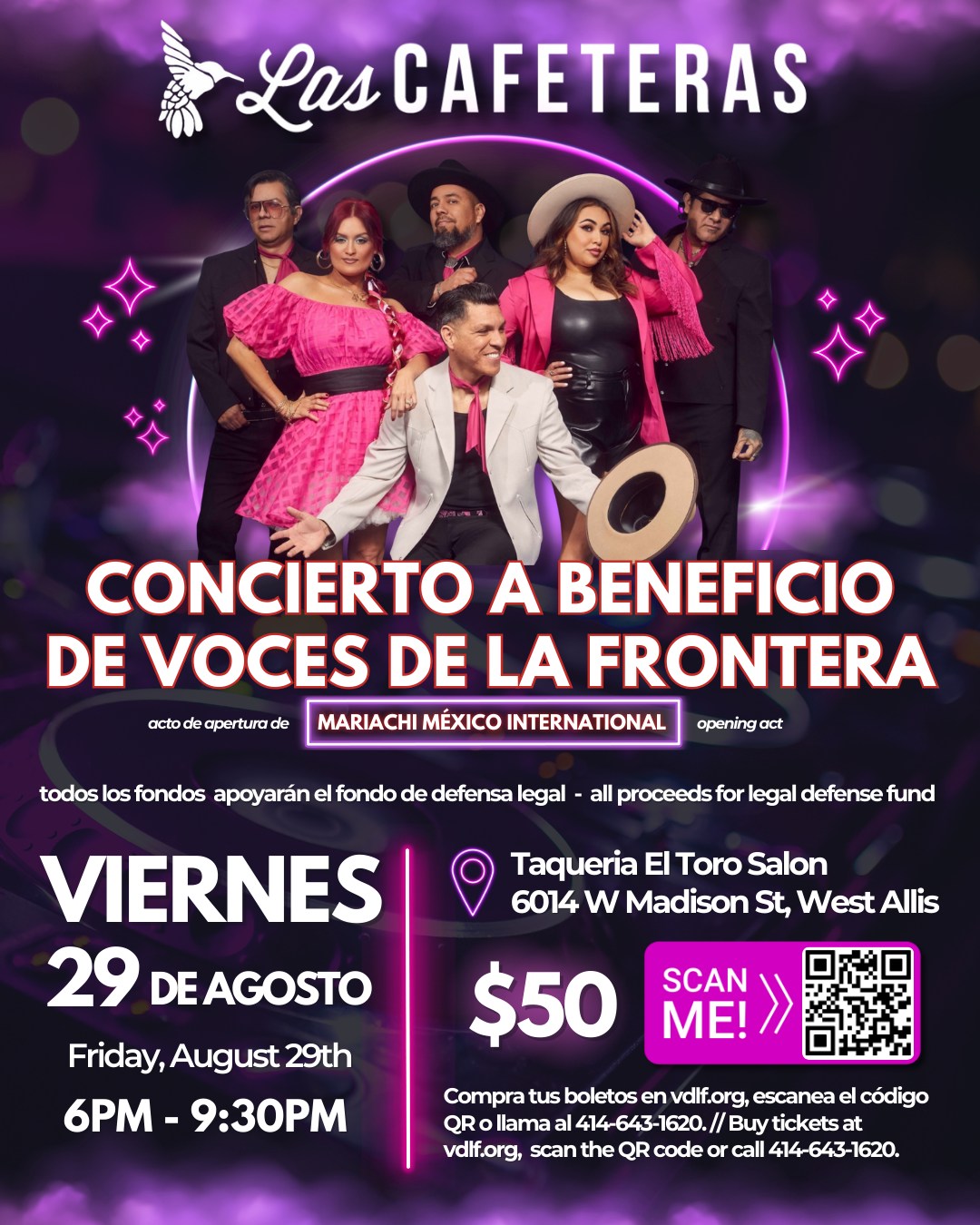 ¡Solo quedan 2 semanas para el concierto de Las Cafeteras — ahora con Mariachi México International como acto de apertura! Todo lo recaudado apoyará nuestro fondo de defensa legal y a nuestra comunidad inmigrante.