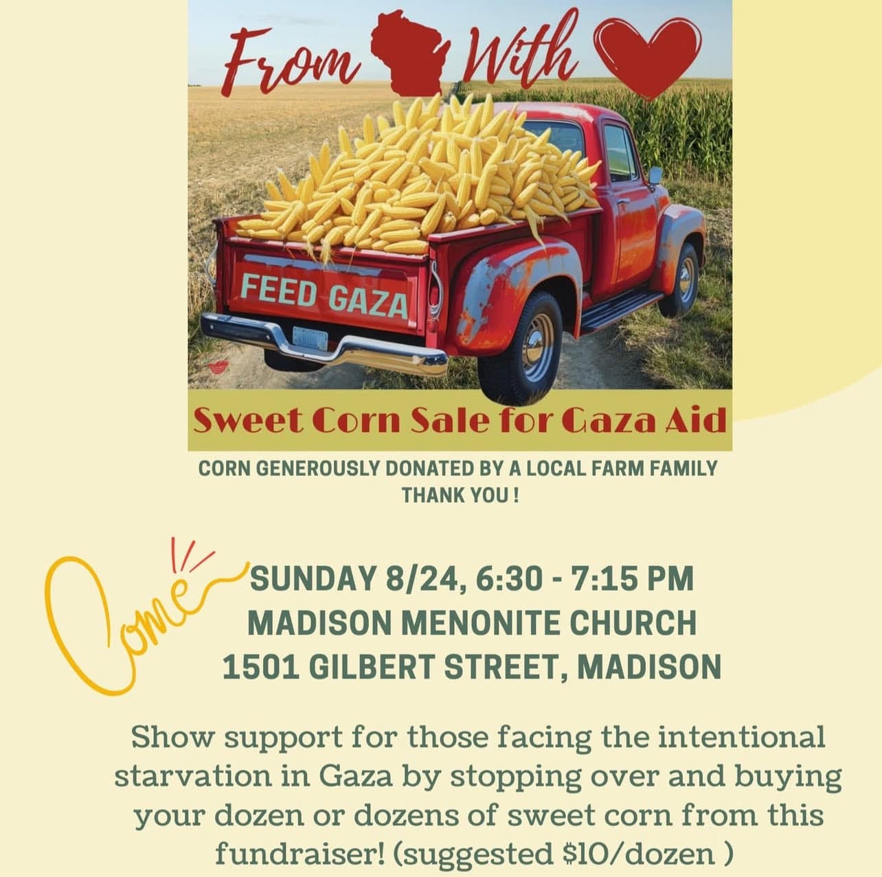 Categories Uncategorized Madison, August 24, 2025: Sweet Corn Sale for Gaza Aid! Post author By WiBOPM Post date August 22, 2025 Madison-Rafah Sister City Project Share this: Click to share on X (Opens in new window) X Click to share on Facebook (Opens in new window) Facebook Like Loading... Related ← Black August and the Epic Struggle to Free Mumia Abu Jamal! → Chicago: Labor Board Certifies Unit of over 170 Student Housing Workers at UIC (OPEIU 39)