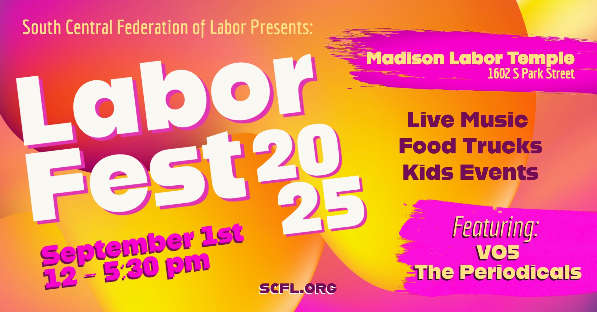 Categories Uncategorized Madison, September 1, 2025: Bike Parade to Labor Fest! Post author By WiBOPM Post date August 28, 2025 South Central Federation of Labor https://www.scfl.org/ Labor Fest Event: https://www.facebook.com/share/1DUB6GJfPr/ https://www.scfl.org/ Share this: Share on X (Opens in new window) X Share on Facebook (Opens in new window) Facebook Like Loading... Related ← Abayomi Azikiwe Describes How Unions Can Defend Democracy → Milwaukee, Labor Fest September 1, 2025