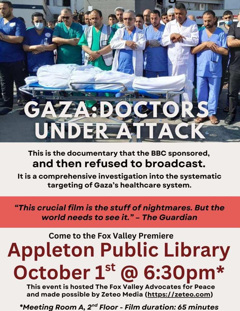 Categories Uncategorized Appleton, October 1, 2025: ‘Gaza – Doctors Under Attack’ – Film Screening Post author By WiBOPM Post date September 13, 2025 Share this: Click to share on X (Opens in new window) X Click to share on Facebook (Opens in new window) Facebook Like Loading... Related ← Ignacio Ramonet: ‘Venezuela Remains the Great Political Laboratory of Our Time’ → Madison, September 28, 2025: Climate March