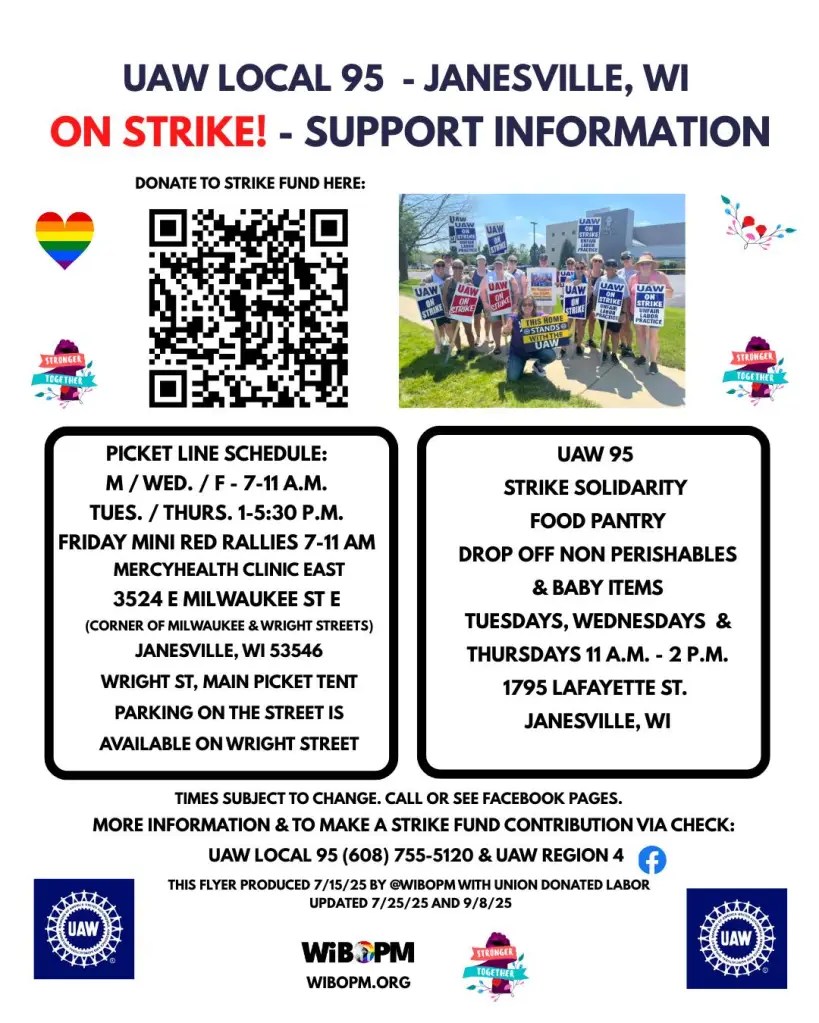 11 A.M. – 1 P.M., 1000 Mineral Point Avenue, Mercy Hospital Saturday, September 20, 2025 – UAW 95 Solidarity Rally