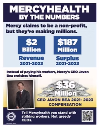 ALL ARE INVITED to ATTEND! A committee of concerned citizens, Citizens in Support of Our Health Care Workers, together with theTown Hall Coalition are organizing a Rally and Press Conference in support of the UAW Local 95 Strike against Mercy Health System at Mercy East Clinic. During the rally we will conduct a press conference with various media organizations, at which we community members will express our support for the workers; Union members will also be present to explain why they are on strike.