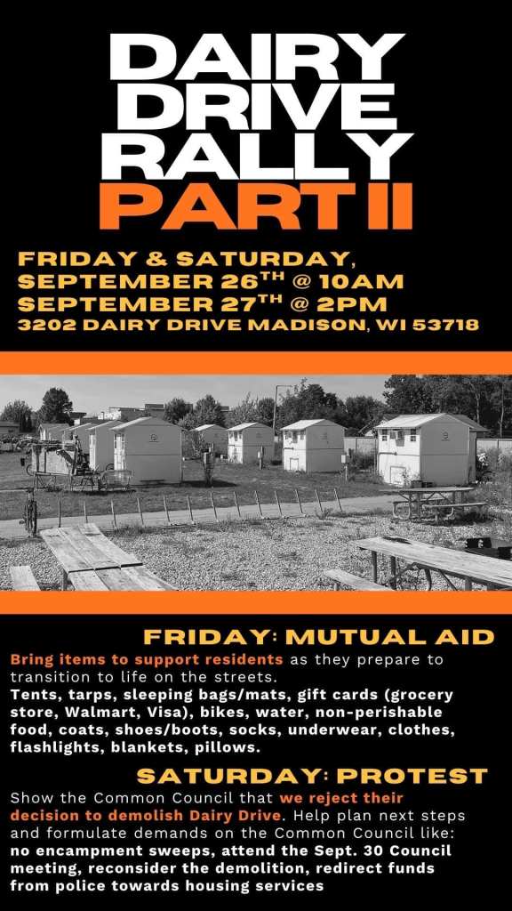 Categories Uncategorized Madison, September 26 & 27, 2025: Solidarity With the House Less Actions! Post author By WiBOPM Post date September 26, 2025 Share this: Click to share on X (Opens in new window) X Click to share on Facebook (Opens in new window) Facebook Like Loading... Related ← National Lawyers Guild – Mass Defense / Know Your Rights Information → Code Pink: Venezuela Rapid Response Tool Kit