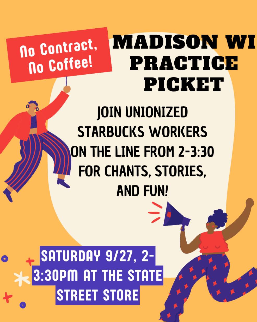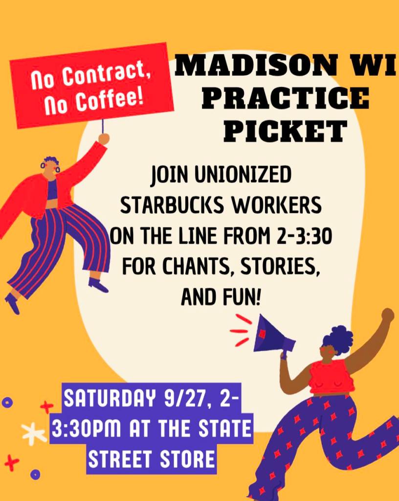 Categories Uncategorized Madison, September 27, 2025: No Contract! No Coffee! Starbucks Workers Picket! Post author By WiBOPM Post date September 26, 2025 Share this: Click to share on X (Opens in new window) X Click to share on Facebook (Opens in new window) Facebook Like Loading... Related ← Federal Workers Declare Five-Alarm Fires at Agencies → Prison Radio: One Year Later: Self Immolation at Red Onion State Prison
