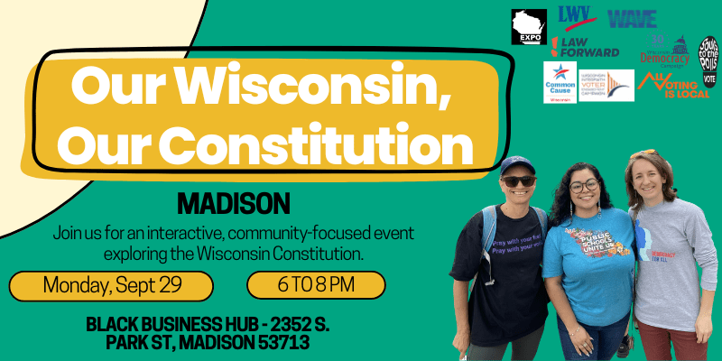 | Join WDC and partners for Our Wisconsin, Our Constitution statewide tour, a free, nonpartisan community event focused on how constitutional amendments are reshaping Wisconsin’s democracy. Over the past several years, amendments have been used to advance political agendas and sidestep the normal lawmaking process. These changes have long-term consequences for our communities, and once written into the Constitution, they are difficult to undo. Register to attend: bit.ly/OurWisConstitution At this event, we will: Explain how the amendment process works and why it matters. Explore the impact of recent harmful amendments. Discuss ideas and reforms to return power to the people. Each gathering includes a free community meal, engaging speakers, and opportunities for open discussion. Residents of all ages and political perspectives are welcome. Event Details Madison Date: Monday, September 29 2025 Time: 6:00 – 8:00 pm Where: Black Business Hub, 2352 S. Park St., Madison (next to the DMV) |