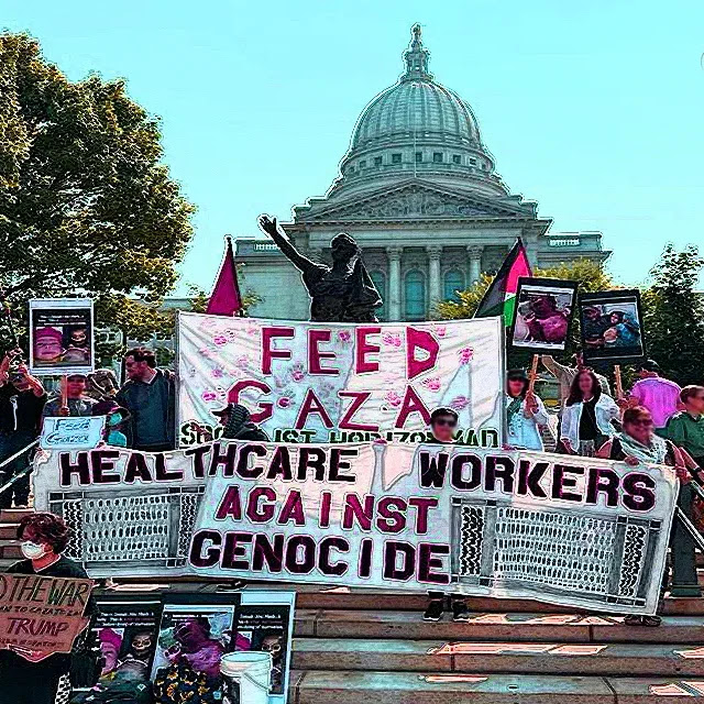 Categories Uncategorized Madison, October 4, 2025: Support the Flotilla and Feed Gaza Now Protest Post author By WiBOPM Post date October 1, 2025 Support the Flotilla and Feed Gaza Now Protest Capitol Square at State Street, by Lady Forward, 10 – 11 am Share this: Click to share on X (Opens in new window) X Click to share on Facebook (Opens in new window) Facebook Like Loading... Related ← Madison, October 3-13, 2025: Lands of Palestine Art Show and Silent Auction → Madison, Thursdays in October 2025: Weekly No War, No Genocide Vigil