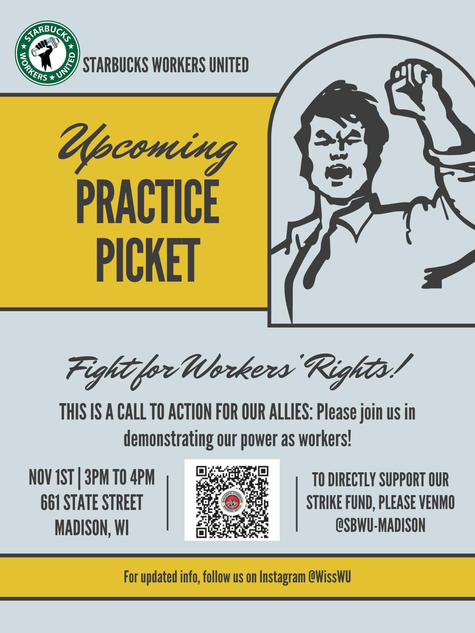 Categories Uncategorized Madison, November 1, 2025: Starbucks Workers Practice Picket! Post author By WiBOPM Post date October 28, 2025 Share this: Click to share on X (Opens in new window) X Click to share on Facebook (Opens in new window) Facebook Like Loading... Related ← Milwaukee, October 29, 2025: Trunk Or Treat! – Treat, Prizes and Costumes! → Milwaukee: Muslim Women’s Coalition 15th Annual Gala Dinner December 6, 2025