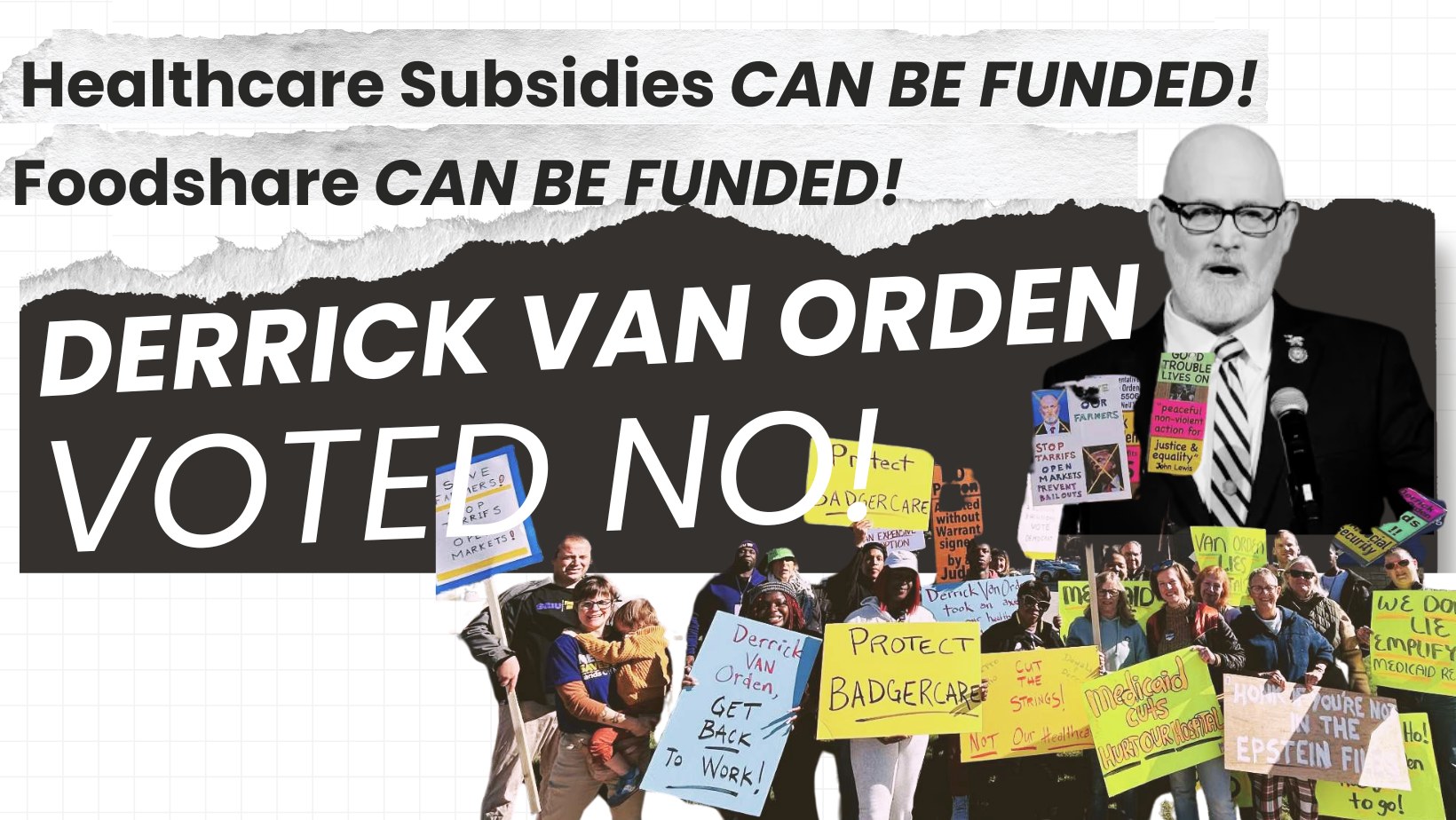 Not only did Derrick Van Orden vote to cut medicaid, but he voted to cut Foodshare and healthcare subsidies!