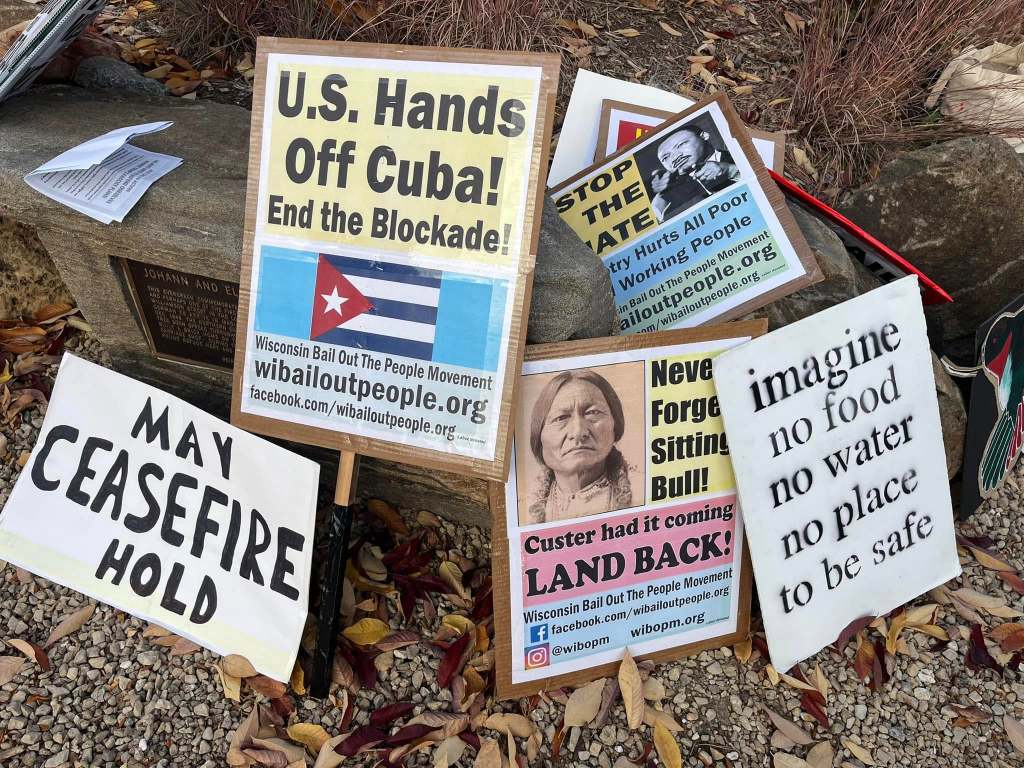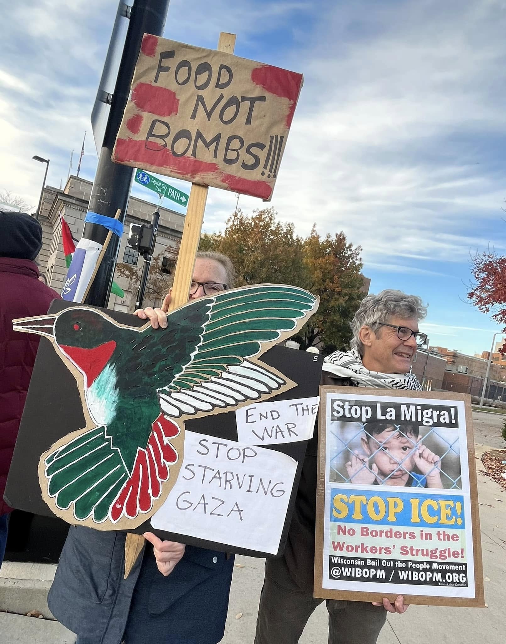 Categories Uncategorized Madison: Workers Demand an End to U.S.-Israel Genocide and Attacks on Cuba, Venezuela and Colombia – Call for SNAP & Healthcare Funds Not Endless Wars Post author By WiBOPM Post date October 31, 2025 All 10/30/25 Madison, WI Photos: Wisconsin Bail Out The People Movement Share this: Click to share on X (Opens in new window) X Click to share on Facebook (Opens in new window) Facebook Like Loading... Related ← Food & Item Drive Nov. 11 and Really Free Market Nov. 22 in Green Bay → Trump approves war escalation against Russia
